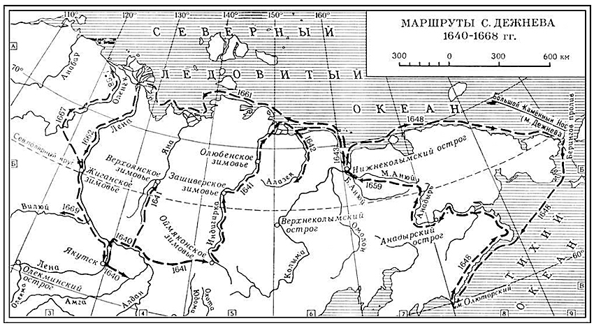 Коч Дежнева «доплыл» до полярной ночи и потерпел крушение где-то в районе Олюторского залива, не потеряв ни одного человека. Дежнев со товарищи были первыми русскими людьми на Камчатке, попавшими сюда в октябре-ноябре 1648 года, за полвека до официального покорения полуострова пятидесятником Владимиром Атласовым.