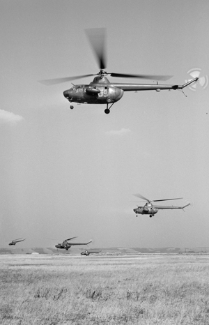 Многое в конструкции вертолета Ми-6 применялось впервые. Диаметр несущего винта, состоящего из пяти лопастей, составлял 35 метров. Такого на тот момент не было не только в СССР, но и во всем мире. Впервые были использованы газотурбинные двигатели, которые расположили за кабиной пилотов, над большим грузовым отсеком. А грузоподъемность Ми-6 была доведена до 12 тонн. Кроме того, несмотря на свои размеры и вес, Ми-6 оказался первым в мире вертолетом, достигшим скорости свыше 300 км/ч. Всего Ми-6 установил 16 мировых рекордов. А в 1957 году появился один из самых известных в мире вертолетов — Ми-8. Вертолеты семейства Ми-8/Ми-17 получили наибольшее распространение среди 24–30-местных военно-транспортных вертолетов. Их общий парк превзошел по численности вертолеты всех других типов. Выпуск Ми-8 в различных модификациях составил более 15 тыс. машин.