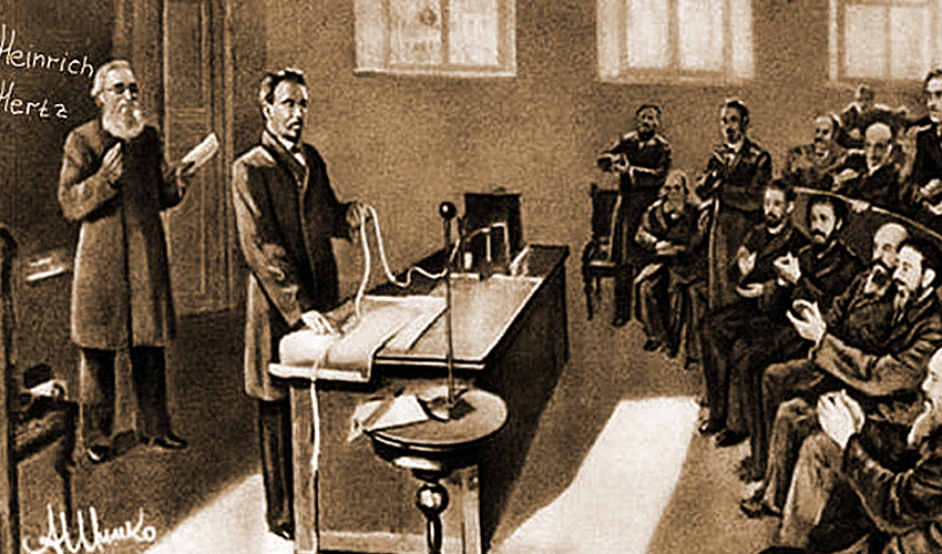 В конце 1880-х и начале 1890-х годов в научной и инженерной среде широко обсуждались работы Герца, который занимался исследованием электромагнитных волн с помощью двух приборов: источника электромагнитных колебаний — вибратора и приемника колебаний — резонатора. Прием сигнала фиксировался по наличию электрического разряда в разрыве резонатора. Герц установил, что его резонатор улавливает электромагнитные волны на расстоянии двух-трех шагов от их источника — вибратора. Он постоянно совершенствовал свои приборы и достиг расстояния десять метров. Фактически Герц был очень близок к изобретению радиотелеграфа. Английский физик Вильям Крукс на страницах одного журнала спрашивал: «Нельзя ли с помощью лучей Герца устроить телеграф без проводов и телеграфных столбов?» Но Герц не обратил внимания и на этот вопрос. А в 1894 году он умер.