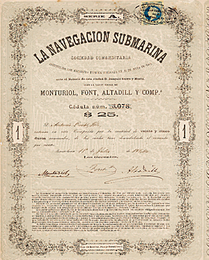 Чтобы собрать пожертвования, а также привлечь средства частных инвесторов, в 1864 году Монтуриоль создал в Барселоне новую компанию La Navegacion Submarina («Подводная навигация»). Любопытно, что одним из больших почитателей Монтуриоля и его таланта в то время был военный губернатор Кубы Доминго Дульче, благодаря поддержке которого на острове удалось собрать весьма солидную сумму денег для проекта.