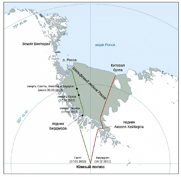 Пятнадцатого марта 1911 года группа Амундсена высадилась на побережье Китовой бухты в море Росса. Помимо норвежцев в экспедиции Амундсена был один русский — океанограф Александр Кучин.