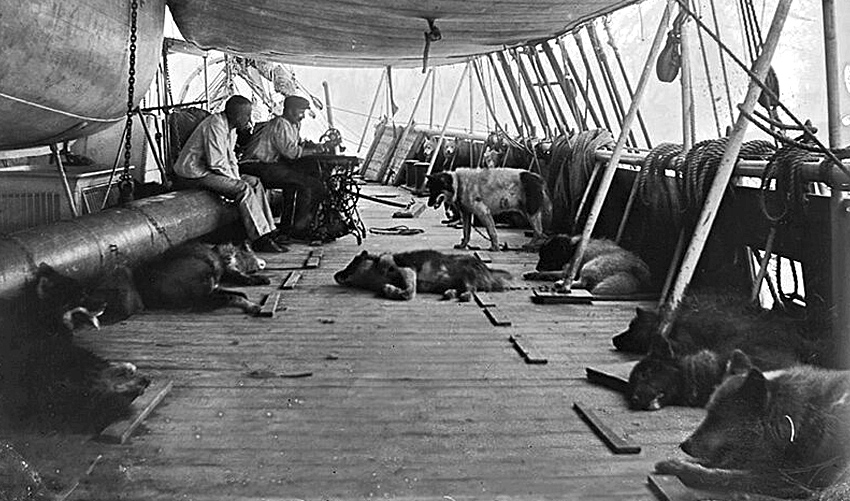 Важной составляющей успеха норвежцев стало использование собак — бросок к полюсу был совершен на четырех нартах, запряженных породистыми гренландскими лайками. Стартовое количество собак — 52 лайки — Амундсен заранее скрупулезно определил с тем расчетом, чтобы по мере продвижения экипажа люди часть из них убивали, скармливая другим собакам и себе. В базовый лагерь вернулись только 12 собак — их сородичи пожертвовали своими жизнями ради людей.