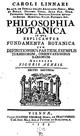 В 1751 году вышла в свет «Философия ботаники», в которой ученый развивает идеи о неизменности и обособленности видов и родов. «Всякое название растения будет состоять из родового и видового названия, — пишет Линней. — Название класса и порядка никогда не будет входить в название растения, но всегда подразумевается… Все растения одного рода должны быть обозначены одним и тем же родовым названием. Наоборот, все растения, отличающиеся по роду, должны обозначаться разными родовыми названиями». Линней приводит примеры, когда к клеверу (Trifolium) относят такие роды, как древовидный клевер (на самом деле это Cytisus, ракитник), Oxalis (кислицу), Fragaria (и тогда это Trifolium fragiferum, «клевер земляниконосный»), Hepatica (тогда получается Trifolium hepaticum, «печеночный клевер» — а на самом деле это печеночница). Абсурдность этого прежнего подхода сейчас очевидна хотя бы из того, что речь идет о растениях различных семейств: бобовых, кисличных, розоцветных и лютиковых.