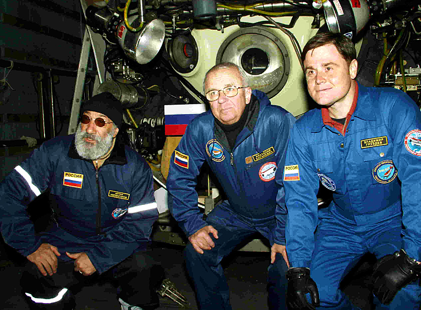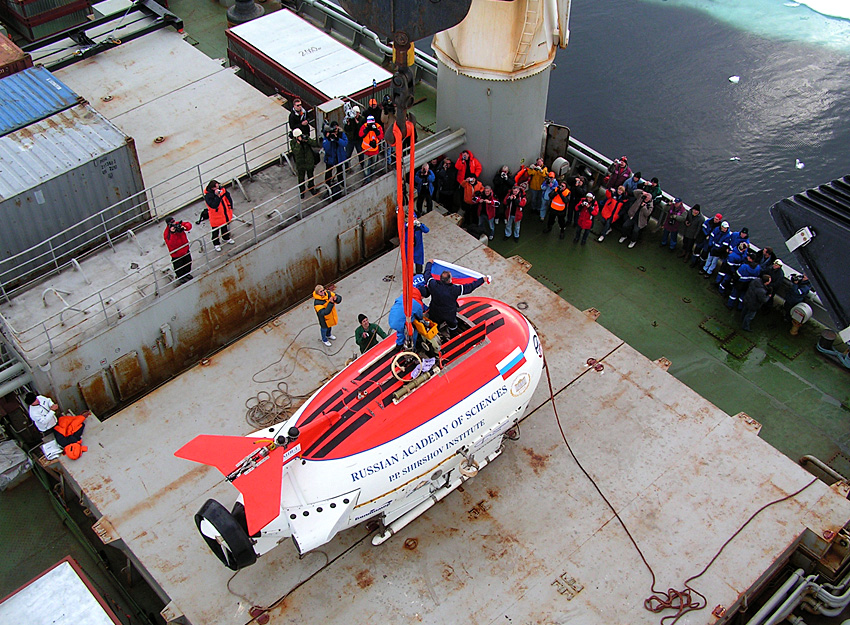 Разговоров при спуске почти не было. «У меня есть один прием, я погружался много с туристами, мандражи у них были очень сильные, — а прием очень простой: рассказывать всякие забавные истории, анекдоты травить, чтобы создать непринужденную обстановку для членов экипажа. Что я во время погружения к полюсу и делал — шутил, рассказывал анекдоты. Артур Николаевич слегка меня посылал, мол, «что ты там рассказываешь», в задумчивости лежал на диванчике аппарата и смотрел в потолок — в верхний прозрачный купол, — вспоминает Анатолий Сагалевич. — Все проходило нормально. Когда мы сели на дно, там уже была связь, мы поздравляли экипаж “Федорова” — сначала я, потом Артур Николаевич. Потом мы отобрали пробы воды, грунта, взяли одно довольно редкое животное и пошли обратно. Была долгая операция всплытия. Всплыли — а винты “Федорова” были прямо перед нами. Из этого положения выйти в полынью было очень просто — надо было через левый борт развернуться. И когда мы выходили в полынью, вдруг нас бросило обратно под лед метров на пять».