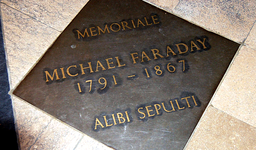 Когда Фарадей умер, королева Виктория намеревалась организовать пышные похороны и погребение великого ученого рядом с Исааком Ньютоном и другими великими деятелями в Вестминстерском аббатстве. Однако он успел по-другому распорядиться своими похоронами, оставив следующую записку: «Скромные похороны, на которых должны присутствовать только мои родственники, самый простой надгробный памятник в самом обычном месте земли». Как истинного сандеманианца Фарадея похоронили на сандеманианском участке кладбища Хайгейт в Лондоне, а рядом с могилой Исаака Ньютона в Вестминстерском аббатстве повесили скромную табличку.