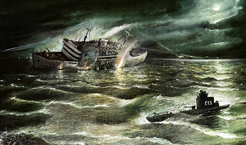 Маринеско командует повернуть лодку перпендикулярно пеленгу и идти на сближение в надводном положении под дизельными двигателями. Команда штурману: ставить ночной прицел, стрелять из носовых аппаратов.