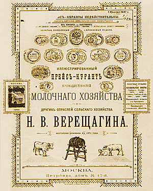 Дважды Менделеев выезжал для осмотра сыроварен Верещагина в Тверскую губернию. Именно ради одной из этих поездок Менделеев отказался лично докладывать об открытии периодического закона. Эпохальный доклад по поручению автора сделал его коллега. Сам же Менделеев в те дни готовил масло, сыр и доил по очереди с Николаем Верещагиным корову по кличке Нянька. Происходило это в хозяйстве «первого русского фермера», которое оба единомышленника пропагандировали на собраниях Вольного экономического общества и в печати. Грандиозный замысел Верещагина: развитие скотоводства и подъем сельского хозяйства северных губерний и Сибири, завоевание европейских рынков для отечественных молочных продуктов — Менделеев разделял и одобрял. Ведь и он сам, как и его друг, брался за решение больших государственных вопросов.