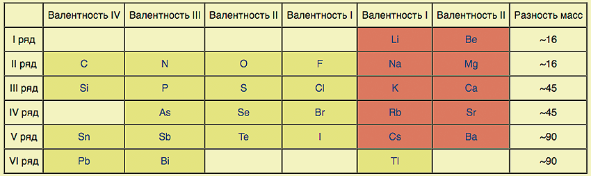 Так перед ним стала вырисовываться картина будущей Периодической системы химических элементов. Еще только забрезжив в голове своего первооткрывателя, она сразу же стала вносить коррективы в существовавшую до нее систему знаний. Так, вначале Менделеев положил карточку с обозначением бериллия (атомная масса 14) рядом с карточкой алюминия (атомная масса 27,4), по тогдашней традиции считая бериллий аналогом алюминия. Однако затем, сопоставив химические свойства, он поместил бериллий над магнием. Тогда же он изменил атомную массу бериллия на 9,4, а формулу его оксида переделал из Ве2О3 в ВеО (как у оксида магния MgO). Это смело исправленное значение атомной массы бериллия подтвердилось только через десять лет. Точно так же он помещает теллур (127,6) перед йодом (126,9), чтобы теллур попал в один столбец с элементами аналогичной валентности (2), а йод — своей (1).