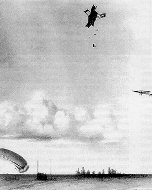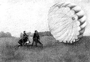 В это же время глава фирмы Вильгельм Ломач добивался у правительства Франции разрешения на выполнение прыжка с парашютом живого человека.