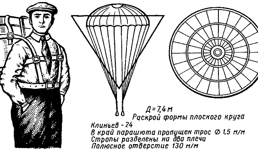 «Парашют надо уложить внутри металлического ранца, на полке с пружинами, — рассуждал Котельников. — Ранец должен закрываться крышкой с защелкой. Стоит тогда потянуть за шнур, соединенный с защелкой, как крышка откинется, и пружины вытолкнут купол и стропы наружу. Под напором воздуха парашют раскроется».