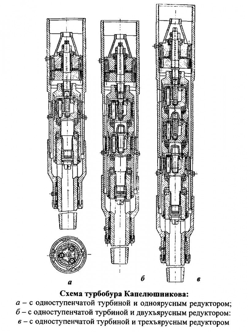 Он привлек к работе двух подчиненных — инженеров Семена Волоха и Николая Корнева. Всего за несколько месяцев они втроем полностью рассчитали и разработали систему, позволяющую решить проблему. На конце колонны располагался цилиндрический кожух-утолщение, внутри которого находилась одноступенчатая турбина. Промывочная жидкость, проходившая под давлением через ствол колонны, заодно вращала турбину, от которой приводился наконечник бура. Идея казалась настолько простой, что непонятно было, почему никто не реализовал ее на десять, двадцать или даже тридцать лет раньше.