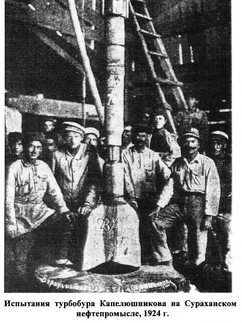 Конечно, не обошлось без проблем. С одной стороны, в 1923–1924 годах было проведено несколько успешных бурений, в том числе в присутствии Кирова, и эффективный КПД при этом оказался заметно выше, чем при обычном роторном бурении. С другой — турбобур был технически сложным приспособлением, он перегревался, турбина часто выходила из строя, и в производстве подобный механизм стоил значительно дороже простой колонны.