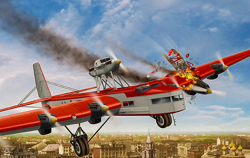 В 1932 году отмечался сорокалетний юбилей литературной деятельности Максима Горького. По этому случаю редактор журнала «Огонек» Михаил Кольцов выдвинул идею построить гигантский воздушный корабль. В стране был объявлен сбор средств на ее реализацию, а постройка самолета была поручена Туполеву. За 14 месяцев восьмимоторный исполин АНТ-20 «Максим Горький» был построен. Шесть двигателей были расположены в крыле и два — в тандеме. Семнадцатого июля 1934 года Громов, к восторгу всех присутствующих на аэродроме, оторвал машину от земли и легко ушел в первый полет. Самолет много летал в составе агитационной эскадрильи. В одном из показательных полетов летчик Благин, летевший в сопровождении на истребителе И-5, решил крутануть «петлю» вокруг крыла АНТ-20. «Петля» не удалась, истребитель врезался в крыло «Максима Горького», и два самолета рухнули на землю… Был построен еще один АНТ-20, который прослужил в «Аэрофлоте» до 1941 года.